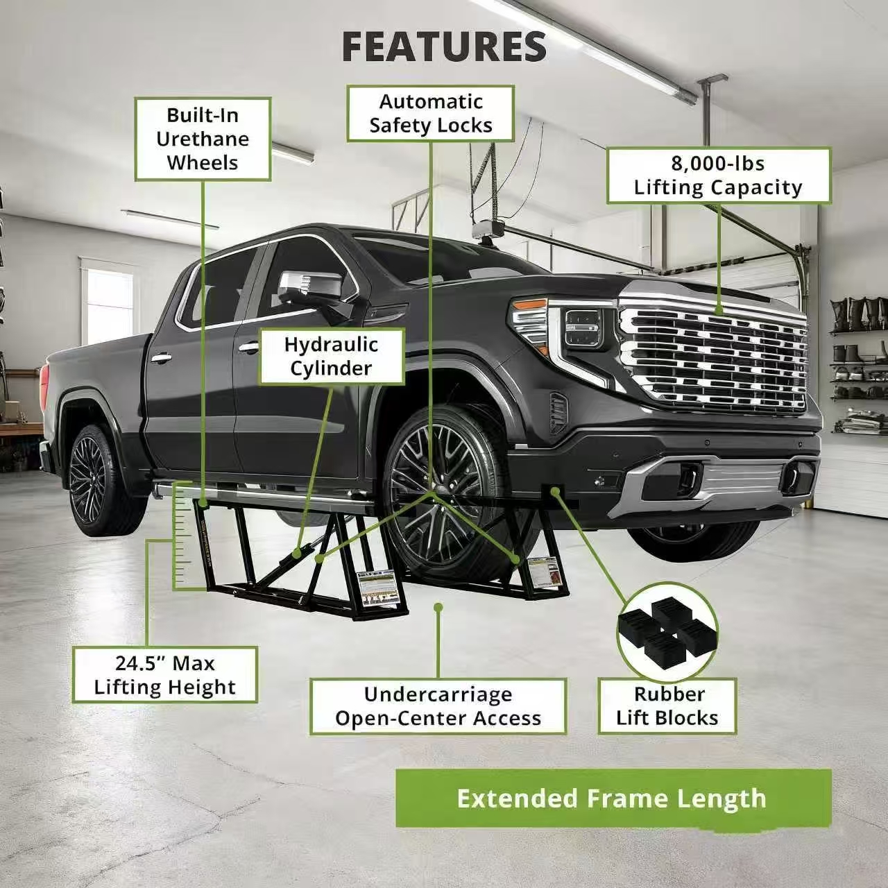 combines the portability of a jack with the safetyand convenience of a full-size lift. lt’s lightweight.easy to store, and requires no permanentinstallation, making it ideal for home garagesmobile detailing, and professional shops.