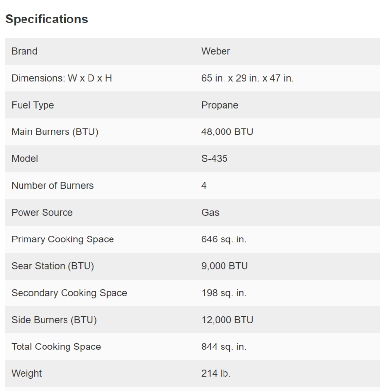 - Porcelain-enameled cast iron cooking grates – 5 years, no rust through/burn through